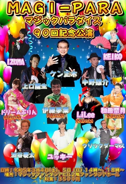 90回を記念し、10名のゲストを迎えての超豪華なスペシャルショー!お土産マジックも貰えます。和田奈月は5日のみ出演。 |