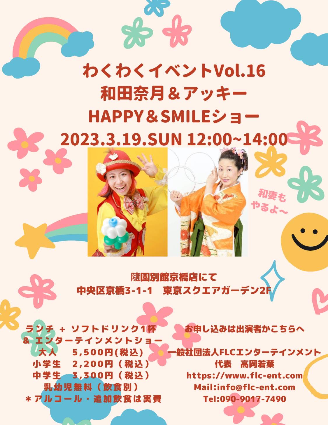 和田奈月&アッキーHAPPY&SMILEショー 北京料理の老舗随園別館別館にてランチを楽しみながら子供も大人もわくわく、不思議で楽しいショー。和妻もやるよ! |