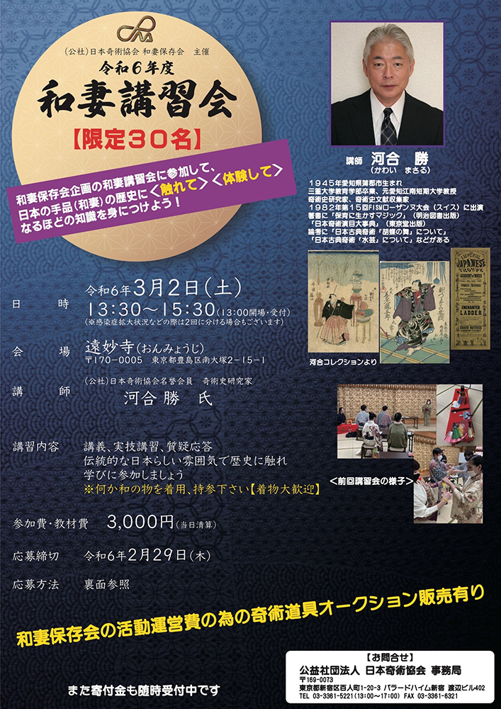 松旭斎正恵師監修 限定30名! 和妻講習会&水芸鑑賞会 松旭斎天一・天勝 ~今に繋がる水芸~