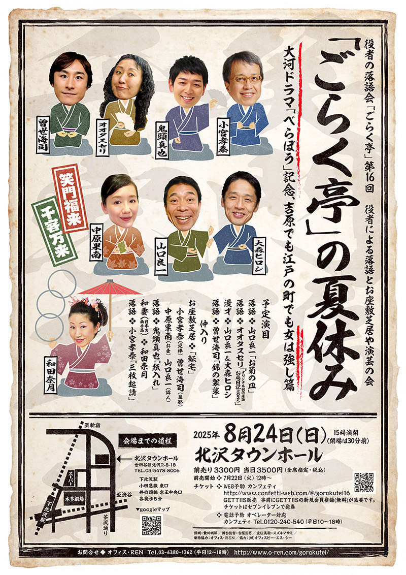 役者の落語会「ごらく亭」第16回 役者による落語とお座敷芝居や演芸の会 「ごらく亭」の夏休み