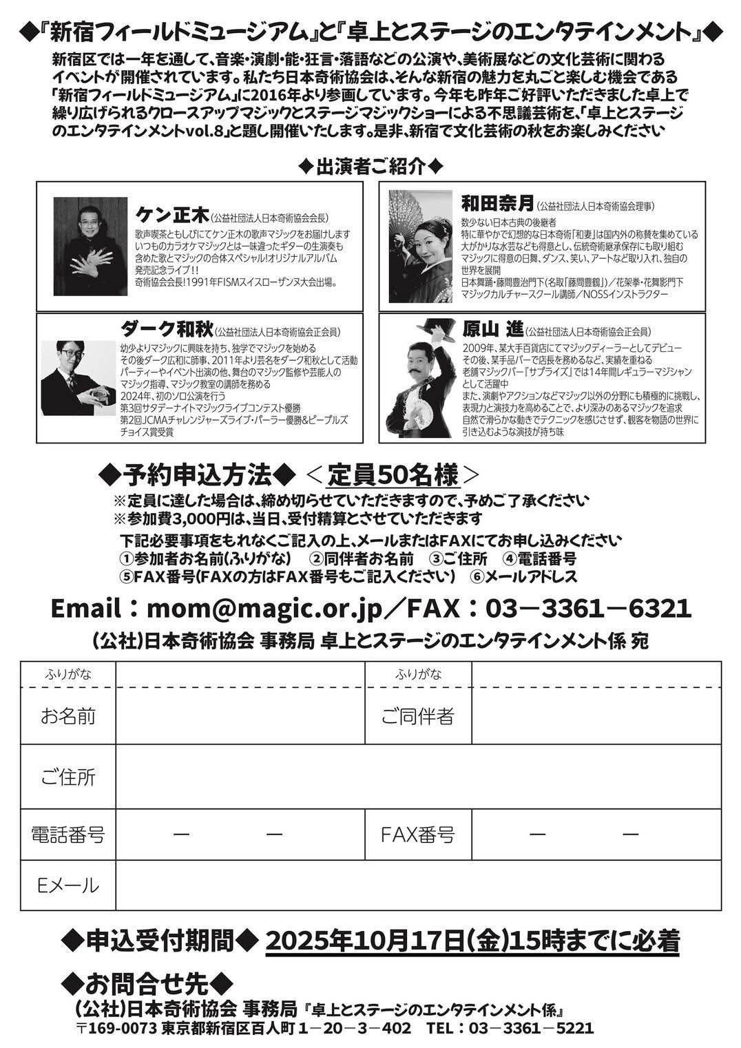 公益社団法人 日本奇術協会主催/新宿フィールドミュージアム参加公演 卓上とステージのエンタテインメント